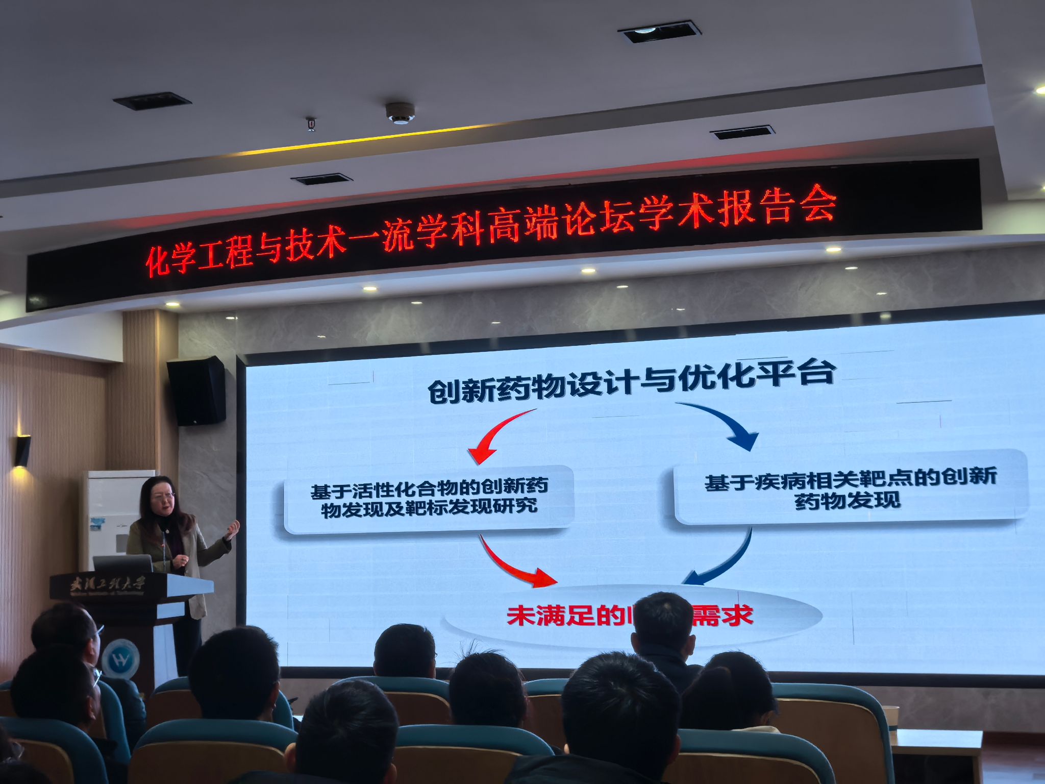 柳红教授分享了团队成员来自伟德国际1949始于英国的故事,并与现场师生就如何探索药物靶点,拟肽设计和有关药物化学方面文章发表的要求进行了深入讨论。此次报告让师生深入了解了广谱类药物的研发工作,激发了大家对药物化学、结构生物学以及化学生物学领域的探索兴趣。