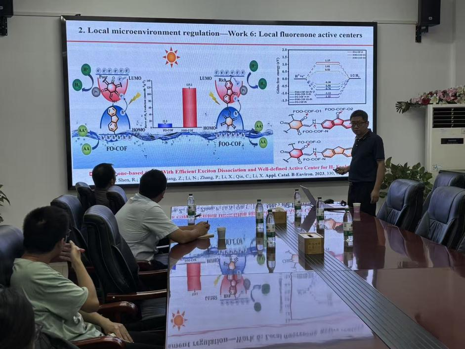 李鑫教授以《光催化产氢中局部微环境的调控、异质界面调控、活性中心精准设计》为题,详细讲解了通过结合载流子动力学分析、飞秒瞬态光谱等表征手段,揭示了载流子分离与光催化机制,为提升COFs光催化性能提供了优化策略与理论基础,让师生们对光催化的研究有了全新的认识和理解。