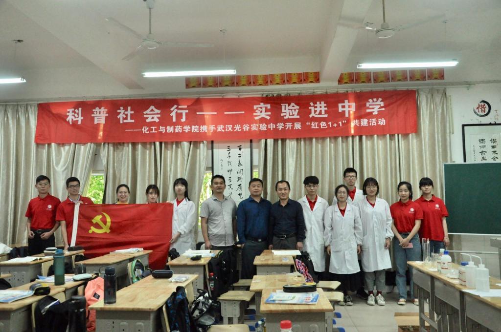 本网讯(通讯员刘清晨 田丽敏)为深入学习宣传贯彻习近平总书记在纪念五四运动100周年大会上重要讲话精神,践行习近平总书记对青年提出的六点要求,激励青年学生争做爱国主义新青年,5月23日,学院党委副书记田勇和党务干事朱雪洁带领学院党员、入党积极分子20余人来到武汉光谷实验中学开展“科普社会行--实验进中学”红色“1+1”共建活动。武汉光谷实验中学党委书记江卫华及八年级六班的班主任、全体同学参与活动。