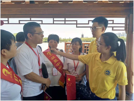 实践团和企业党员代表共赴嘉兴南湖,瞻仰红船,集体学习了“红船精神”的内涵、历史地位和重要意义,并对来访的各类群体进行采访交流。