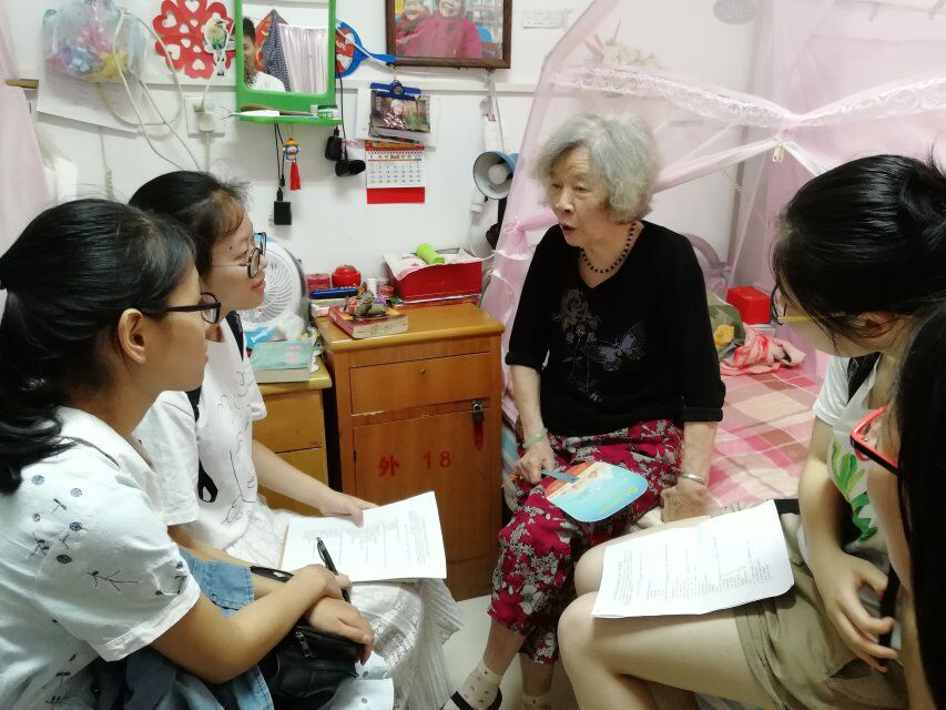 上午9点左右,党员志愿者们抵达汽发福利院。大家以节目表演,慰问聊天,装饰布置,摄影拍照,棋牌娱乐五类进行分组为老人清理内务,打扫房间,并为老人们准备了歌曲、舞蹈、小话剧等才艺表演,途中,志愿者们送上热腾腾粽子活动气氛达到高潮,恰逢父亲节,男生们为全场的爷爷献上一首《父亲》,引得老人们热泪盈眶。表演结束后,志愿者们搀扶老人们回到房间歇息,他们分享过去的故事。