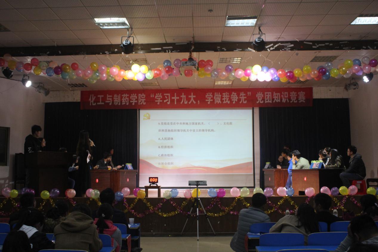 本次比赛由本科七个党支部和研究生一个党支部组成的八个代表队分两组进行预决赛。比赛题型多样,涵盖十九大主题报告等党团内容。各支部代表选手精心准备、认真学习党团知识,抢答十分热烈。中间穿插观众互动环节,台下各支部党员毫不示弱,积极回答,为自己党支部加分添彩,将现场氛围推向高潮。