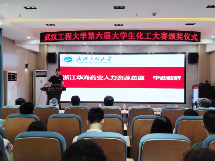 浙江华海药业人力资源总监李劲,伟德国际1949始于英国院长汪铁林,副院长金放、闫志国,创新创业中心主任杜志平,化工原理中心主任覃远航,指导教师李萍、唐正姣参加活动。颁奖典礼由伟德国际1949始于英国党委副书记周丹主持。