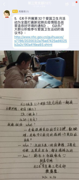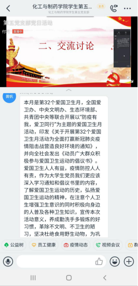 防疫有我,爱卫同行:化药学院本科生党支部开展主题党日活动 “云端”学习不停步