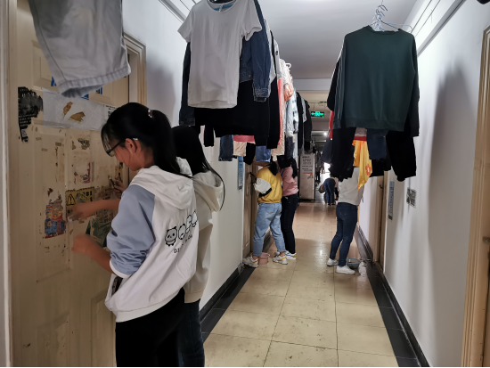 本次活动旨在净化美化学生学习生活环境,每个志愿者手里或拿着抹布、或拿着刷子、或拿小刀、小铲子等清洁工具,发扬不怕脏、不怕累的优良作风和团结协作的精神,对学院所属的教辅一栋宿舍门、走道内等位置上张贴的各类小广告等进行了集中清理。