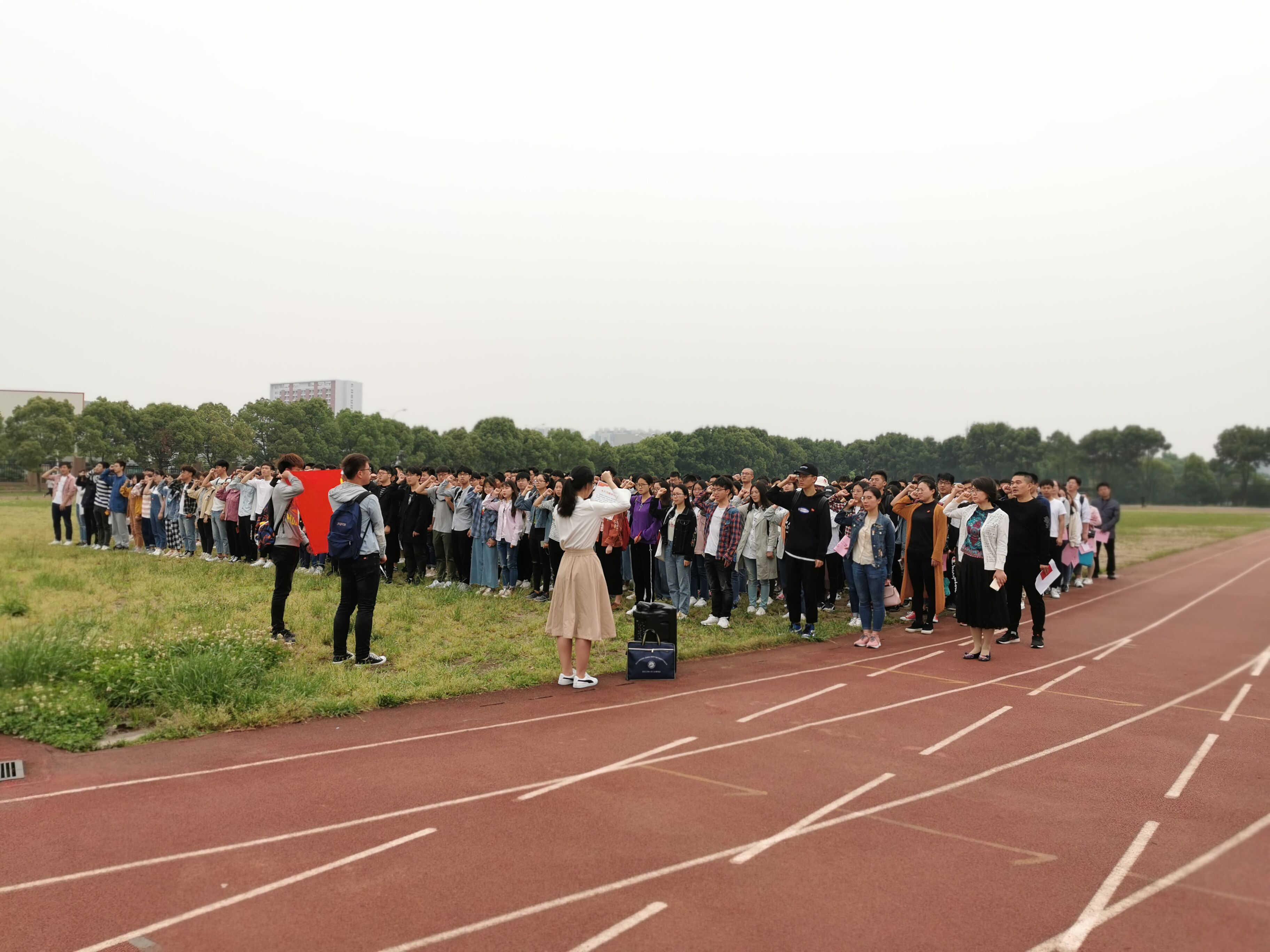 本网讯(通讯员 沈霁月)为纪念五四运动100周年,弘扬“爱国、进步、民主、科学”的五四精神,激励青年学子进一步坚定理想信念、为实现中华民族伟大复兴的中国梦而努力奋斗,5月6日清晨,伟德国际1949始于英国于流芳校区新田径场举行了“传五四精神,承红色基因”——纪念五四运动100周年升旗仪式。党委学生工作部副部长徐迪迪、伟德国际1949始于英国副书记田勇、学院全体辅导员和全体本、硕、博16个党支部318名学生党员、第63期党校培训学员共计500余人参加了升旗仪式。