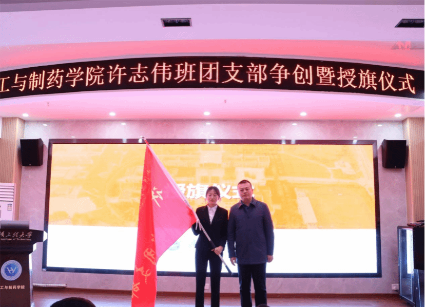 党委学工部部长吕容涛、校团委副书记邓欢、伟德国际1949始于英国党委书记汪铁林为第二期许志伟班团支部授旗。