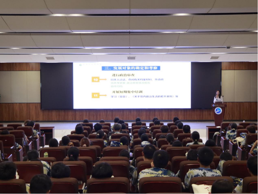 学院高度重视本次教育活动的规范性与实效性,安排学生党支部骨干成员面向新生班级召开入党启蒙教育大会。大会围绕学校党员发展工作规程,系统梳理了从递交入党申请书、确定入党积极分子、培养考察到发展为预备党员、转正的全过程具体要求与时间节点。讲解内容条理清晰、重点突出,着重强调了思想入党的重要性与组织程序的严肃性,为新生提供了清晰、权威的入党指引,有效增强了其对党组织的认同感和加入党组织的程序意识。