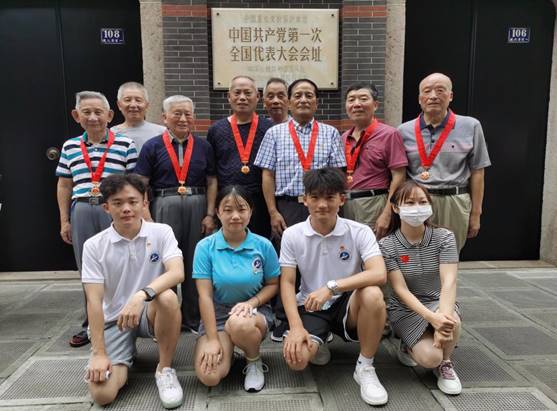 实践团将中共一大会址和纪念馆作为此次党史学习之旅的首站,在参观中共一大会址的过程中,实践团成员有幸与上海市退伍军人党员代表团一行相遇,他们胸前佩戴“光荣在党50年”纪念章。通过与投身革命、历经艰辛的老一辈军人交谈,实践团成员真切地感受到中国革命之坎坷,和自身所担之重任。