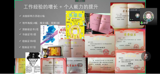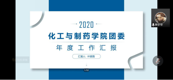 会议开始,团委副书记叶紫薇同学和学生会主席来思彤同学分别作了团委和学生会2019-2020学年的工作汇报,对过去一年的工作情况和收获做了总结。