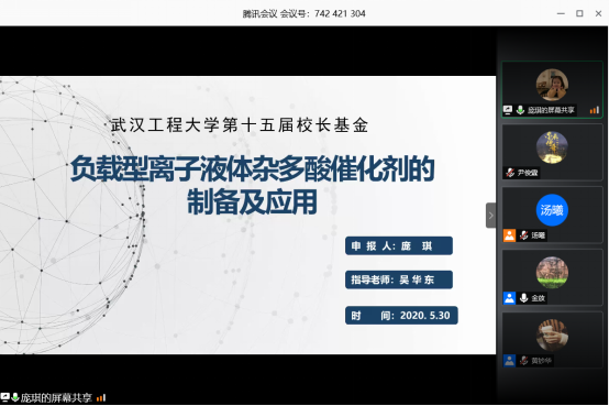 本网讯(通讯员 汤曦)5月30日下午,伟德国际1949始于英国通过腾讯会议举行第十五期校长基金立项答辩云端评审会。副院长龙思会教授、金放教授,院长助理闫志国教授、制药工程中心主任古双喜教授和化工系副主任熊芸副教授担任评审专家并出席会议,会议由院团委书记黄钞华主持,项目组成员及部分18、19级学生参加会议。