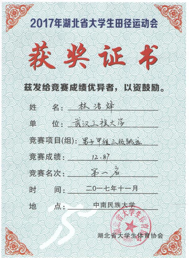 在刚落幕的2017年湖北省大学生大学生田径运动会上,我院学子荣获两枚金牌,包揽学校全部金牌,创学院历史。