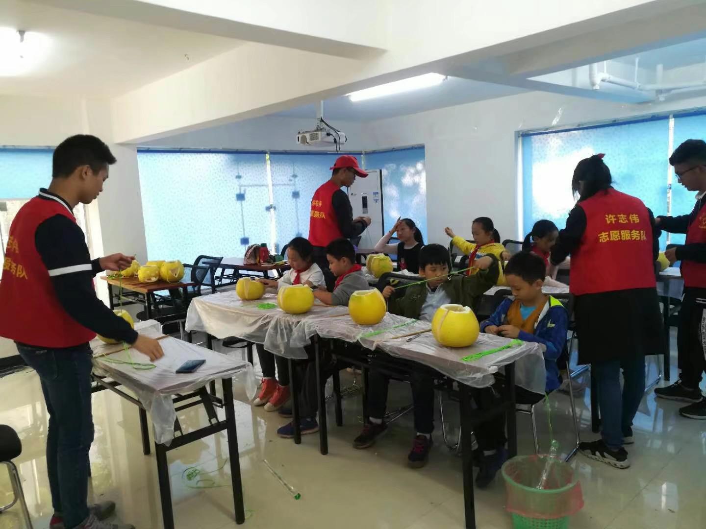 2017113日,许志伟志愿服务队的志愿者们走进阳春社区,开展了四点半课堂活动,活动的内容是教小朋友们做柚子灯。