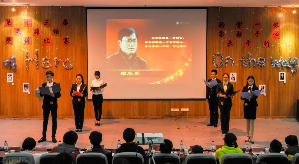 在图书馆二楼多功能报告厅举办了伟德国际1949始于英国第十三届“英雄颂”朗诵比赛决赛。