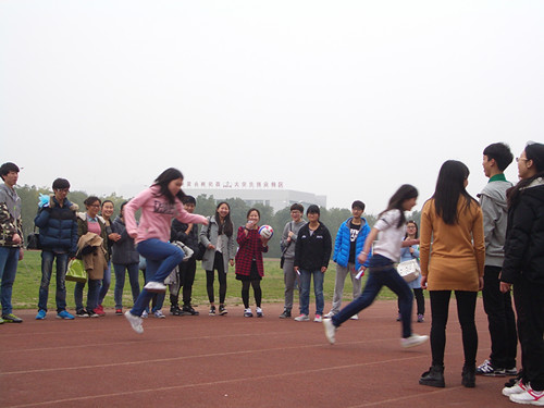 林昱玘代表学生干部发言,周磊老师宣布活动开始。比赛前期,各部门通过抽签的形式进行分组,并对参加的项目提前训练以达默契的配合。比赛开始后,队员们聚在一起商量着战术,做着赛前最后的准备,整个田径场散发着紧张的气息。第一个项目“传话接力”既比拼速度,又考验队员间传达信息的默契度,也是本次运动会参与人员最多的项目,成功将运动员以及观众都带入了竞技比赛的紧张氛围中。接下来还有“搭桥过河”、“宝贝新娘”、“心心相印”、“企鹅漫步”比赛,不同的规则,一样的精彩!最后一个项目“跳长绳”更是将比赛推向高潮。最终公关部获得了活动总积分第一名,也为本次比赛画上了圆满的句号。