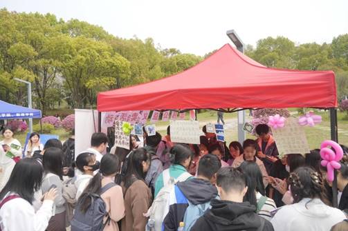 义卖活动现场热闹非凡,物品琳琅满目,吸引了一大批师生。义卖物品主要是由许志伟班团支部的同学亲手制作的手工艺品,同学们集思广益、相互合作,共同制作出精美的手链、发夹、花束气球等,为筹得善款发挥创意。