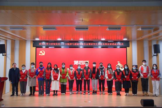 据悉,研究生党员先锋宣讲团主要围绕党的创新理论、国家战略、发展成就、形势政策、校史校情等方面深入到校内、校外社区、企业和乡村开展宣讲工作,形成“学以致用、讲学互动、以讲促学”的研究生成长成才长效机制,引领和培育一批有理想、敢担当、能吃苦、肯奋斗,具有大局意识、担当精神和创新能力、堪当民族复兴大任的时代新人。(审稿 熊伦 周丹)