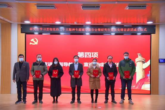 党委宣传部副部长赵小硕为研究生党员先锋宣讲团指导教师颁发聘任书。