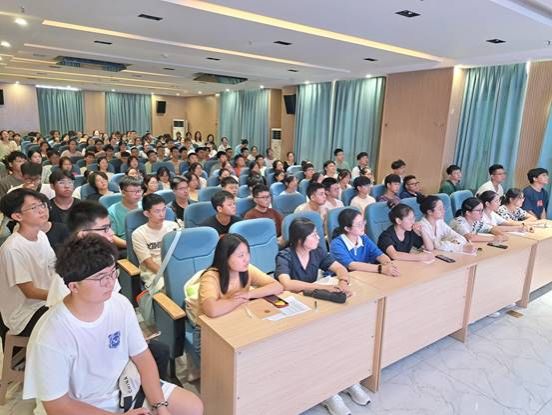 在互动交流环节,同学们踊跃发言,老师们就学生在大学期间提出的各种疑问进行详细解答,现场讨论氛围活跃。