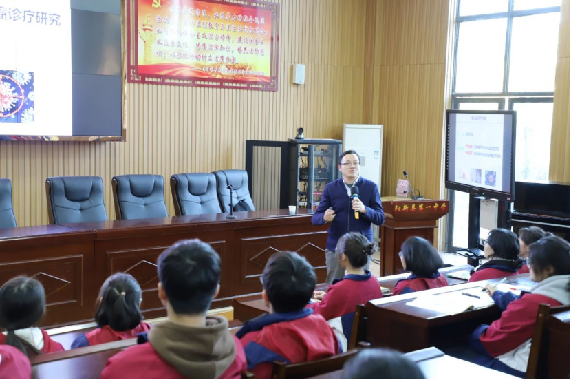 吴风收教授聚焦“肿瘤光学诊断与治疗”,为百余名高三学生作专题报告。在讲座中,吴风收教授深入浅出地向高三学子介绍肿瘤光学诊断与治疗这一前沿领域。他从基础概念讲起,逐步深入到复杂的技术原理和应用前景,结合生动的临床案例和形象的图片、视频资料,让同学们对这一专业性极强的领域有了初步的认识和理解。同学们不仅全神贯注地聆听,还认真记录着关键知识点。