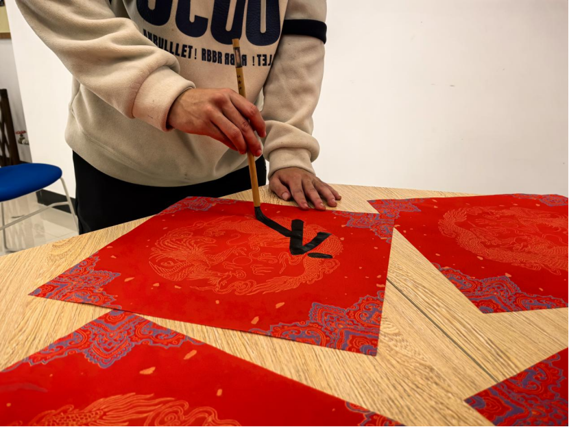 本网讯(通讯员 翟森稳)为弘扬中华传统文化,传承中华传统书法艺术,丰富同学们的课余生活,营造欢乐的新年氛围,近日,化药学院在学校“一站式”学生社区举办了一场写福送福活动,让同学们在笔墨之间感受浓浓的年味,为新的一年送上最真挚的祝福。