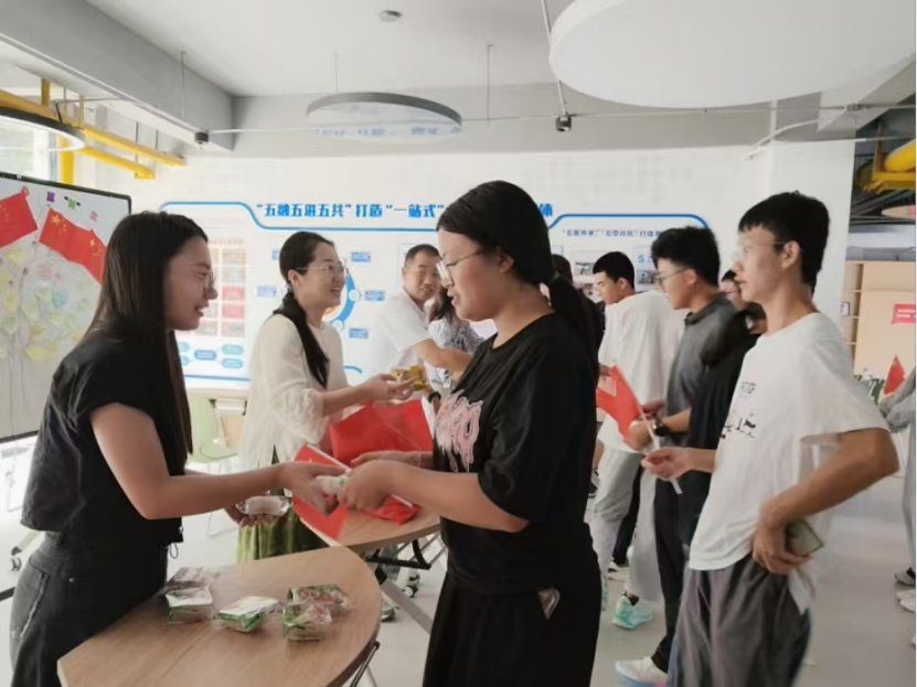 活动现场,周丹为同学们送上节日的祝福,并叮嘱大家,在欢度佳节的同时,要时刻树牢安全意识,严格遵守留校规定,确保人身与财产安全。随后,周丹与学院辅导员一起为同学们分发中秋月饼,将学院的温暖关怀送至每一位学子心中。