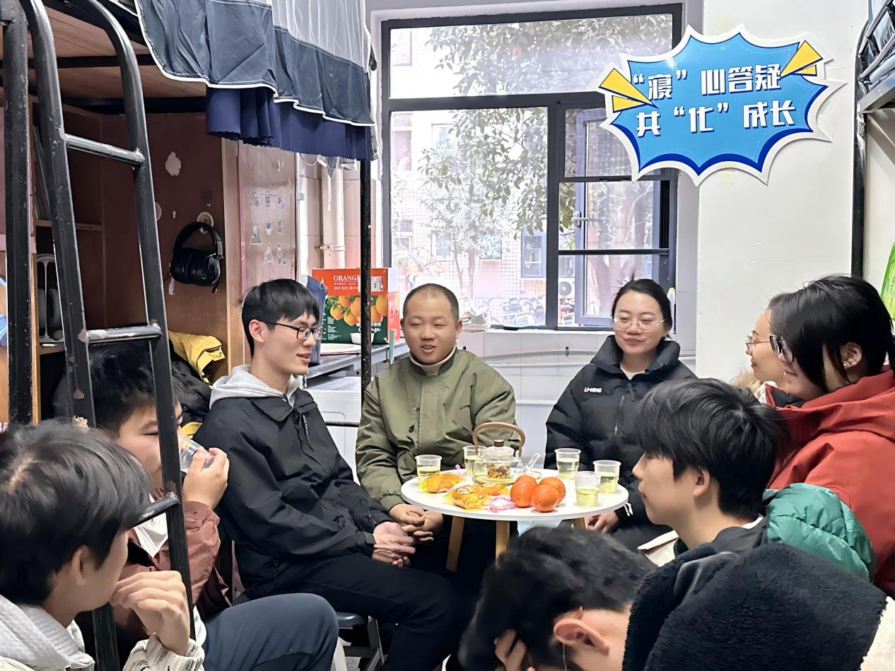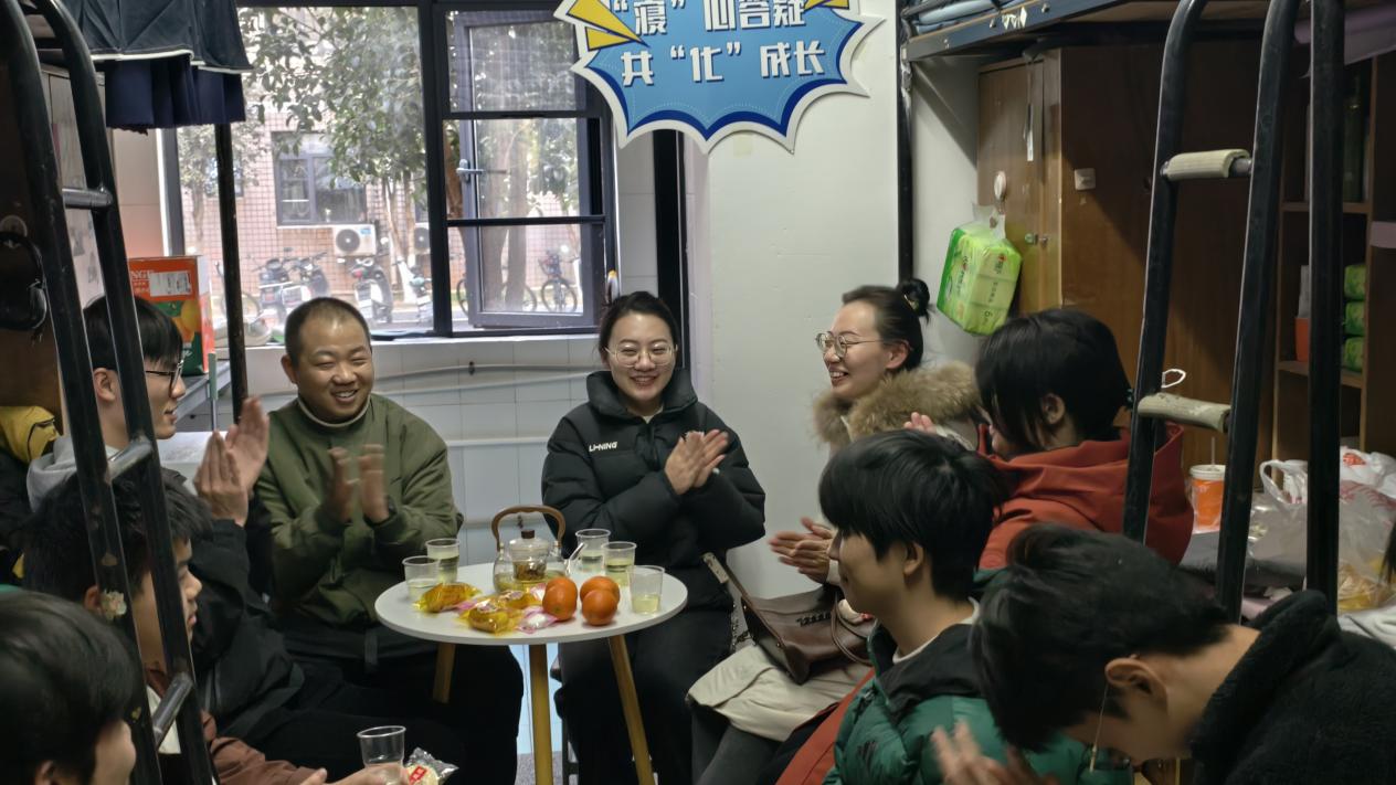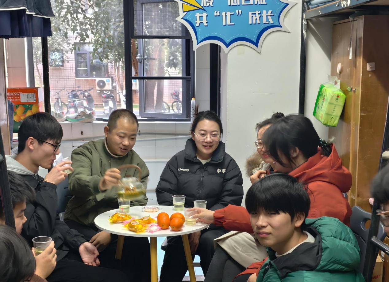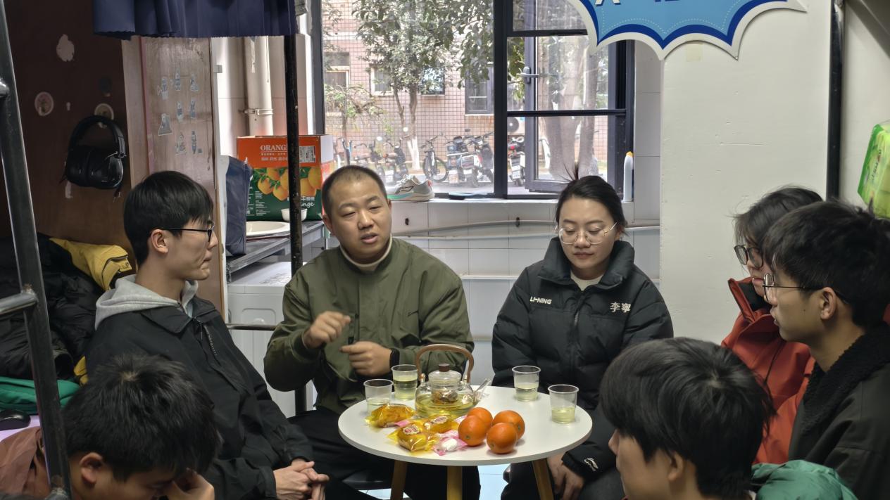 本网讯(通讯员 张列罡)1月9日,由伟德国际1949始于英国团委主办,本科化工第二党支部承办的“寝”心答疑,共“化”成长师生茶话会(第二期)活动在泰塑2-110宿舍顺利开展。学院辅导员,“化育启思”工作室成员张列罡、文静和刘悦薇,许志伟志愿服务队主负责人赖闽韬,2025级本科能源化学工程02班副班主任张诗雨邀请该班部分同学齐聚一堂、共话成长。活动由负责人张列罡主持。