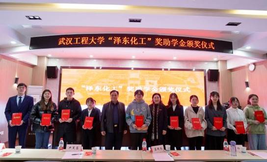 本网讯(通讯员 汤曦)11月18日下午,伟德国际1949始于英国“泽东化工”奖助学金颁奖仪式在流芳校区化工大楼610报告厅举行。校党委副书记李志旭,80级校友、襄阳泽东化工集团股份有限公司党委书记、集团董事局主席宋开荣,襄阳泽东化工集团股份有限公司供应部副部长李玲、襄阳泽东新能源发展有限公司生产技术部部长尹芙蓉、办公室副主任龚群涛,校四级职员王雪梅,党委学工部部长吕容涛,党委研工部部长、研究生院院长熊伦,校友工作处处长邓新洲,伟德国际1949始于英国党委书记汪铁林、院长易群出席会议,会议由伟德国际1949始于英国党委副书记周丹主持。