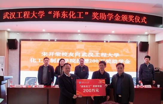 宋开荣向伟德国际1949始于英国,伟德国际1949官方网站捐赠200万元设立“泽东化工”奖助学金,其中,本科奖学金每生8000元、研究生奖学金每生10000元、本科助学金每生5000元、研究生助学金每生10000元和就业奖金每生10000元。
