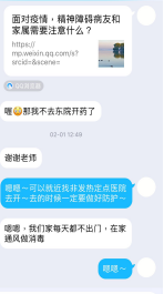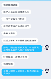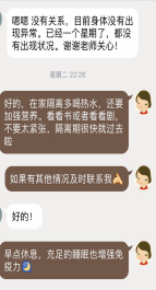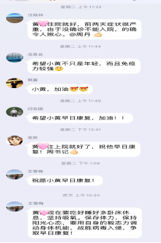 对于各年级因确诊或疑似、发热被隔离的学生,在不影响治疗的情况下,随时保持线上沟通,加强思想引导、心理疏导和学习生活指导,疏导和稳定学生的情绪。2016级黄同学自2月3日起连续出现发热症状并居家隔离治疗,辅导员每日与学生及家长联系,时刻关注其治疗情况。该生于9日经医院检测确诊为新型冠状病毒感染的肺炎患者,且出现体温39℃、血氧饱和度低、呼吸困难、咳血等危急情况,因医院床位紧缺暂时在家排队等位。得知相关情况后学院党委副书记周丹第一时间向学校、学院汇报,同时向校医院寻求医疗支持,并与学生所在社区取得联系,时刻与其家人保持联络,安排辅导员填写人民日报守望相助通道。次日,该同学入院光谷同济医院。“还是要进一步密切关注黄同学的身体及心理变化,做好学生的心理疏导工作。请转告黄同学,学院领导对他的健康状况都很关心,为他加油打气,叮嘱他要多卧床休息,坚持吸氧,好好吃饭,保持阳光心态,争取早日战胜病毒,早日康复。”她不忘叮嘱辅导员。