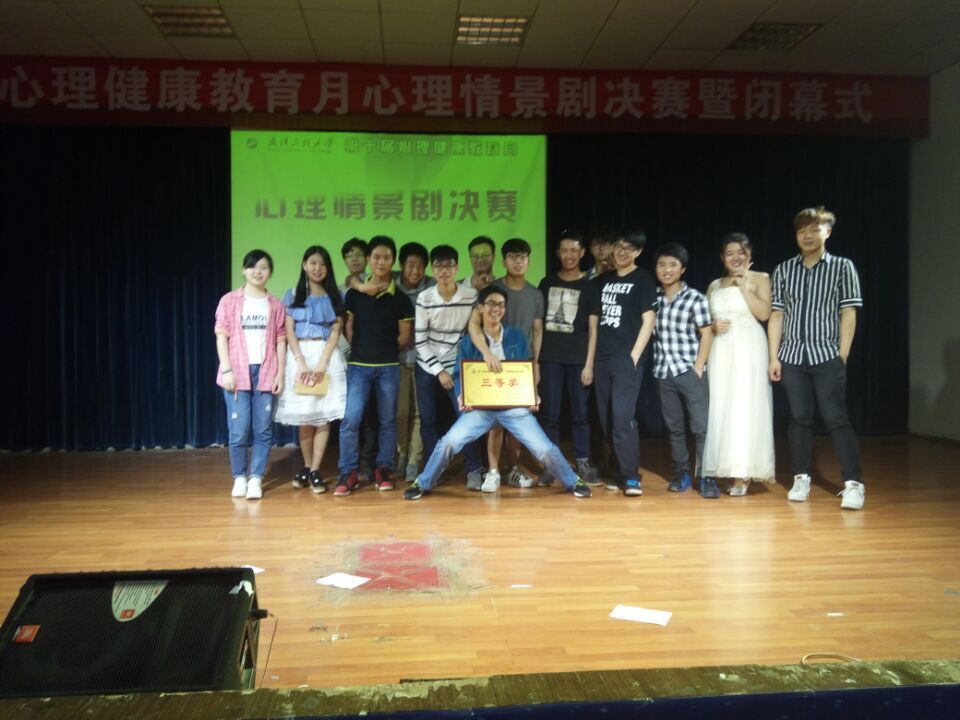 心理情景剧决赛于2016年6月2日在文科楼一楼模拟法庭举行,本次大赛邀请了张彦铎副校长,学工部路海华部长、王涛部长,校团委李芳书记及校医院负责人周利民医生等担任特邀嘉宾。由华中农业大学心理健康中心专业老师,武汉纺织大学心理健康中心专业老师担任大赛评委。