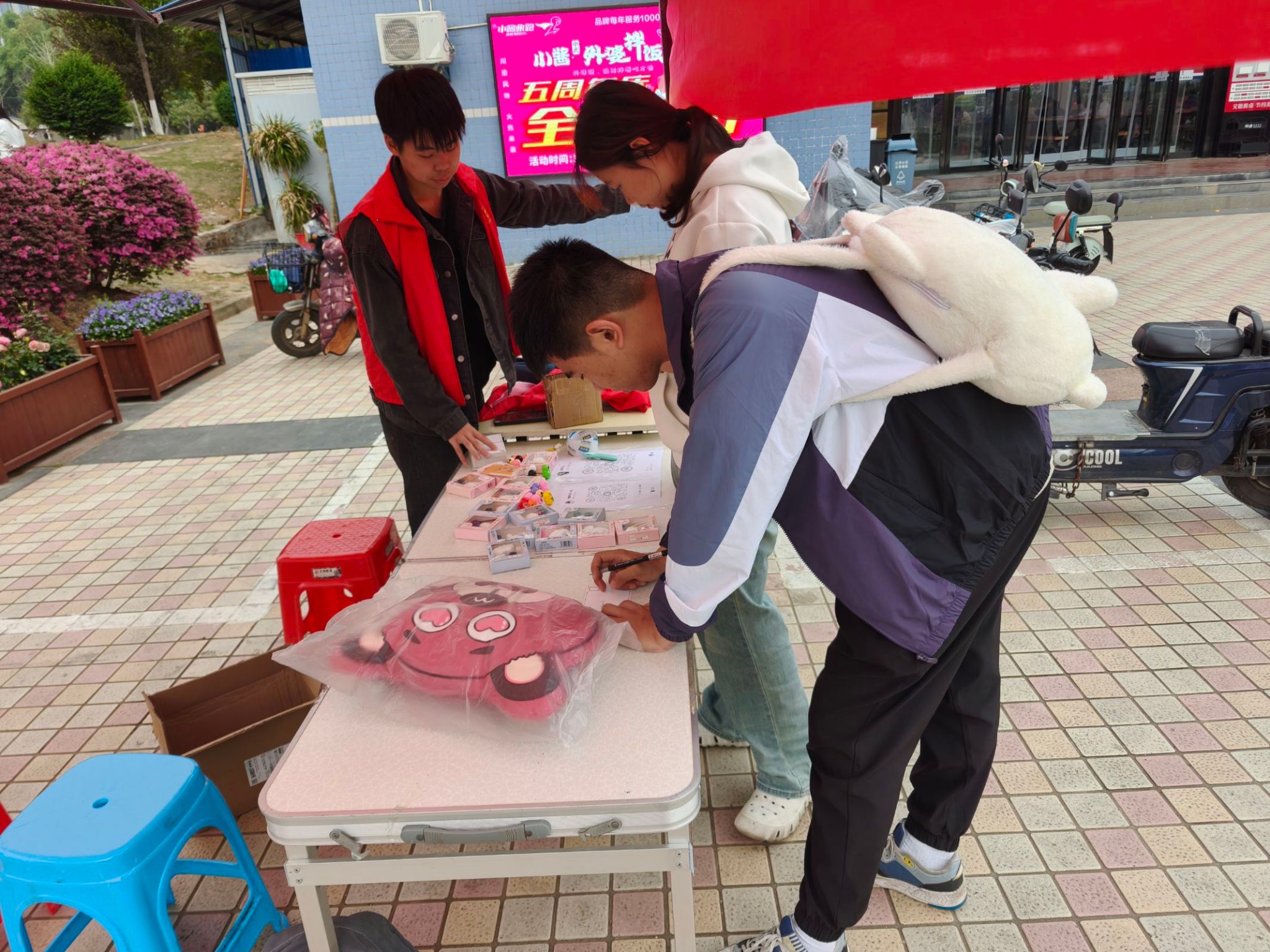 活动伊始,伟德国际1949始于英国校园内便搭起了“微笑行动,心灵童行”的宣传摊位。摊位上摆满了各式各样的明信片、信件以及手工制作的玩具。同学们热情高涨,纷纷驻足观看并参与 活动。在摊点前,志愿者们耐心地向过往同学介绍活动的意义与目的,鼓励大家积极参与进来,为留守儿童送去关爱与希望。活动期间,摊位前人潮涌动,气氛热烈非凡。