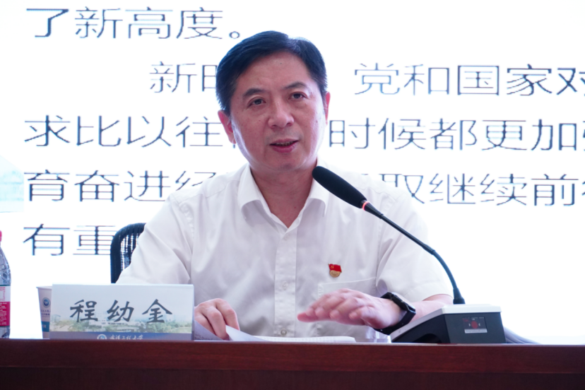 程幼金强调,全校上下要多措并举抓好党史学习教育,从党的百年伟大奋斗历程和高等教育奋进经验中汲取继续前行的智慧和力量,全体教师要把党史学习教育贯穿于立德树人全过程,体现在提高“四个服务”的能力上来,深入把握新发展阶段、贯彻新发展理念、融入新发展格局,瞄准创建高水平教学研究型大学战略目标不动摇,不断巩固和强化特色办学整体优势,奋勇争先创一流,把党史学习教育转化为推动高质量发展的强大动力,以久久为功的韧劲、百折不饶的精神推进“双一流”建设,开创事业发展的新篇章。