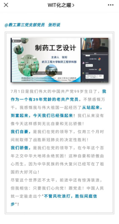 在庆祝建党99周年之际,响应学校党委开展常态化疫情防控“四个一”行动的号召,发挥基层党组织战斗堡垒作用和师生党员的先锋模范作用,伟德国际1949始于英国党委于“七一”前夕,集中开展庆祝建党99周年“讲抗疫故事,向‘七一’献礼”主题系列微党课活动。