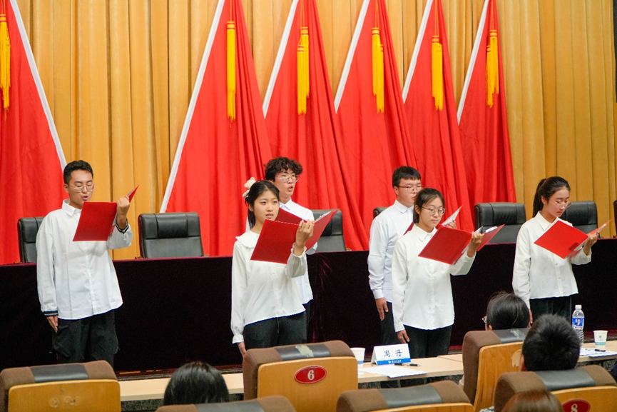 开班典礼上,学院党建中心的同学为大家深情朗诵诗歌《大写的中国》,表达了化药学子的拳拳爱国之心与殷殷报国之志。