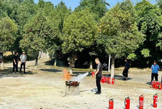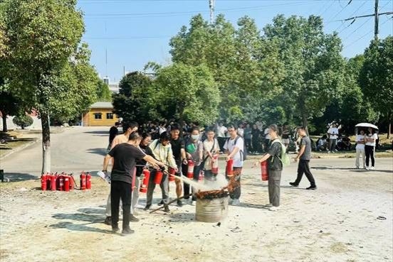 消防安全演练环节中,王子龙和欧阳诗虎指导同学们分组进行实操体验,让学生对消防安全有全新的认识,掌握灭火器与灭火毯等消防器材的使用方法,增强防火灭火意识。