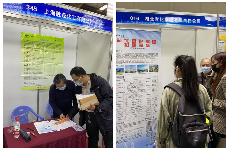 为充分发挥校友企业促就业作用,提供更多就业岗位,学院根据后疫情时代特殊就业形势,在多年来充分利用校友资源助推学生成长成才的基础上,积极建立网络招聘服务体系,搭建供需直推双向平台,上下齐心、精准发力,搭建桥梁、畅通渠道,努力推进校企深度合作、共融共生。在学校招生与就业工作处的组织协调下,本次招聘季吸引了大批优质校友企业回校招聘,湖北宜化集团、宜昌人福药业、浙江物产化工集团等30余家校友企业入驻招聘会现场,十余家企业在学院举行专场宣讲,500余名化药学子参加招聘投递简历。