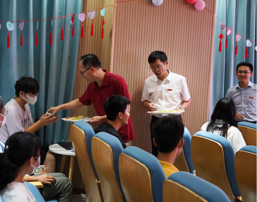 恰逢中秋之际,学院为2022级新生送上了一份特别的惊喜,为72位正值9月生日的同学过集体生日,主会场齐唱生日歌,学院领导班子为8位在场的学生代表送上精心准备的绿植小礼物,并前往新生宿舍发放月饼,齐乐中秋。