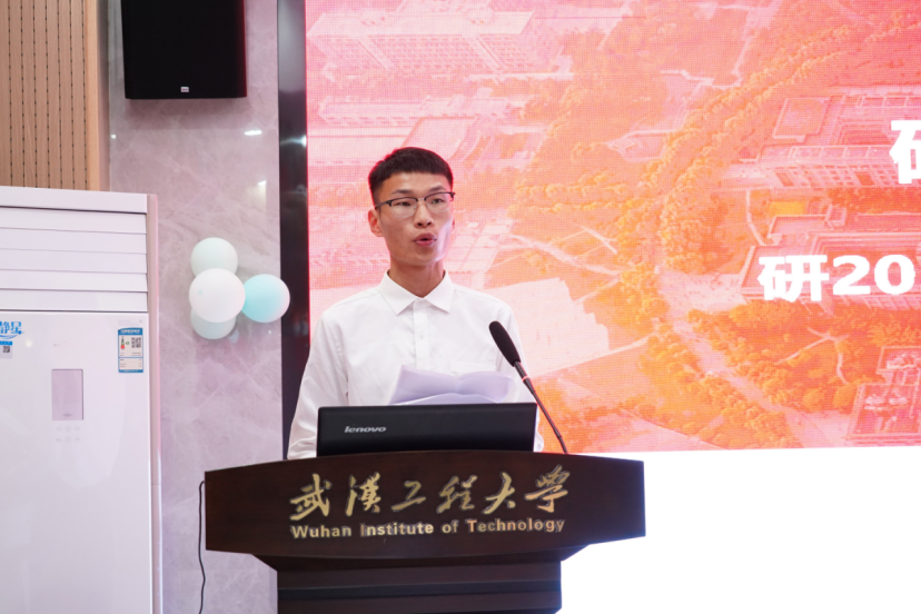 2022级化学工程专业硕士研究生张怀东作为研究生新生代表发言,他结合自己作为新生初入工大的所思所想,号召大家要慎思明辨、笃行致远、知行合一,争做有为青年。