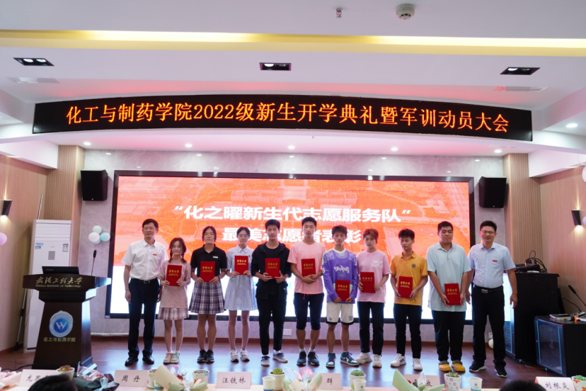 典礼上,学院党委书记汪铁林、院长易群为在迎新志愿服务工作中表现突出的新生代表颁发“化之曜新生代志愿服务”最美志愿者荣誉证书。