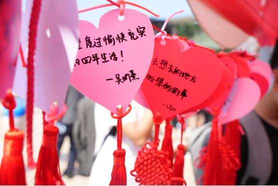 在学院迎新现场,一张写满学院领导班子、辅导员的朋友圈合照框,成为新生报到处网红打卡点,吸引了众多新生目光,同学们纷纷参与合影,用一张张照片定格下这一刻十八岁的青葱岁月,开启未来四年精彩生活。除了合影框,学院也通过各种方式充分展示自己的学院特点和迎新特色。为迎新2022级新生,学院精心准备爱心大礼包,学院定制专属口罩、一本《论语》书籍、手绘地图等,都展现出学院对新生的关心关怀,将中华传统文化元素融入迎新全过程。迎新现场,学院组织新生在学长学姐纯手工制作的爱心祈愿卡上写上自己对学校、学院、自己的寄语,将祝福写在2022年9月。为了让新生尽快熟悉学院、融入学院,学院的“学长学姐”们开展了“学长学姐陪你逛校园”活动,他们化身“校园导游”,带领新生们游览校园。此外,师生见面会等各类特色活动也精彩纷呈,持续上演。