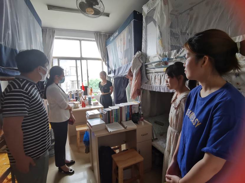 学院党委副书记周丹及辅导员深入学生宿舍,亲切地与学生交谈,询问学生近况、了解学生诉求,叮嘱大家要遵守校园疫情防控纪律,尽快调整身心状态,以饱满的精神面貌开启新学期、新生活。为满足学生需求,辅导员为学生购置安装宿舍爬梯脚踏板,从小事、细节上去关爱学生。