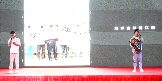 学院2018级毕业生辅导员季凯和毕业生宋子兴带来了歌曲演唱《入海》,祝福所有毕业生跃入人海,勇做浪花。