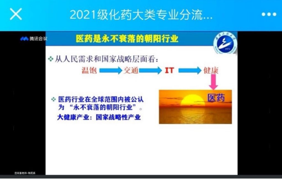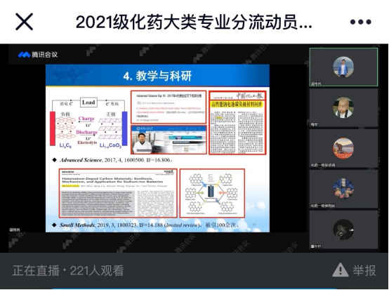 本网讯(通讯员 梅军)为有序开展学院化工与制药类专业分流工作,使学生明确选择专业方向,4月9日晚,伟德国际1949始于英国通过腾讯视频会议和线上直播召开2021级专业分流动员宣讲会。学院党委书记汪铁林,院长易群,副院长金放、龙思会、闫志国,院长助理刘根炎,各系(中心)主任、副主任,2021级辅导员、班主任、全体化工与制药大类300名同学参加了此次线上会议,会议由学院党委副书记周丹主持。