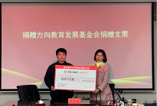 基金会秘书长邓新洲代表学校教育发展基金会与湖北振华化学股份有限公司董事长蔡再华签订了捐赠协议书。
