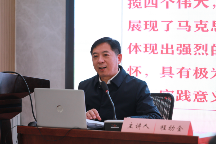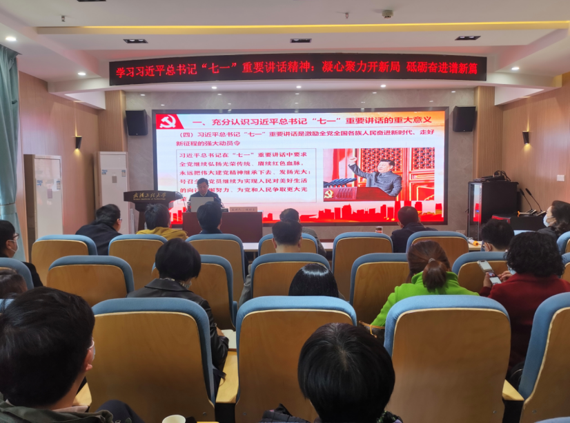 会上,程幼金围绕习近平总书记“七一”重要讲话精神,以《凝心聚力开新局 砥砺奋进谱新篇——为把工大全面建成特色鲜明的高水平教学研究型大学而努力奋斗》为题,从“七一”重要讲话精神的重大意义、主要内容、如何学习贯彻落实“七一”重要讲话精神等三个方面进行了深入剖析和延展解读,深刻阐释了党的“四个伟大成就”、“三个世界奇迹”、三个深刻改变“”以及以史为鉴开创未来的“九个必须”,高度概括了伟大的建党精神。同时,程幼金结合学校事业发展实际,深入解读了学校第三次党代会精神的核心要义,从做到“七个必须坚持”、认清新发展阶段学校发展面临的机遇和挑战、明确学校发展目标及战略步骤、遵循“一二三四五六”发展思路、狠抓落实“八个聚焦”,为全体师生提出了明确的要求和奋斗的方向。