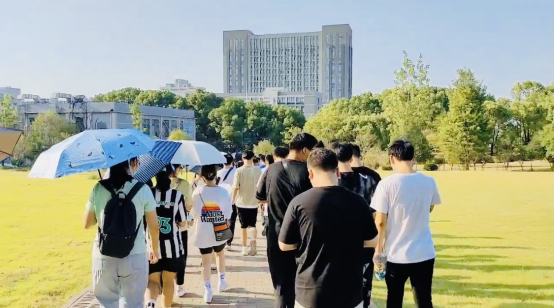 下午,在党员副班主任地带领下,新生各班组织了参观校园的活动。蓝天、白云和草地,青春的校园因为注入了新鲜血液显现出了别样的风采。