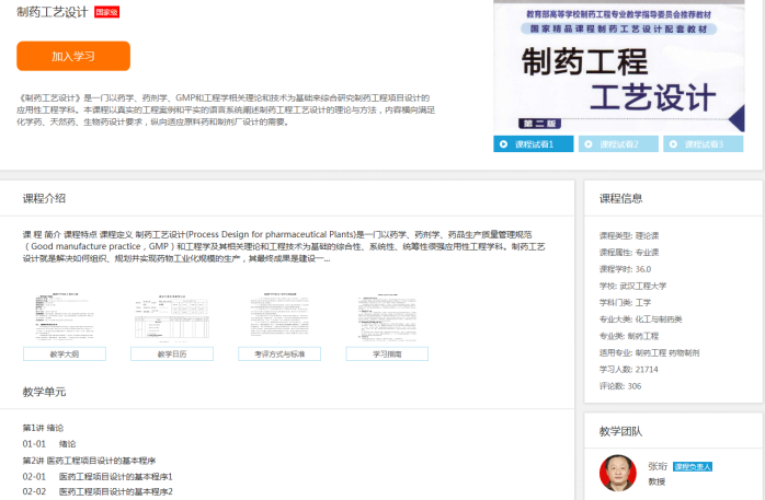 3.底气来自十几年的课程网站建设。2007年张教授带头建设了“国家级精品课程”,2013年又在教育部“爱课程”网站上建设了国家级资源共享精品课程“制药工艺设计”网站,网址为:http://www.icourses.cn/coursestatic/course_7060.html。近期,他又响应号召在优学院上建设了“制药工艺设计”课程网站,网址为:www.ulearning.cn。