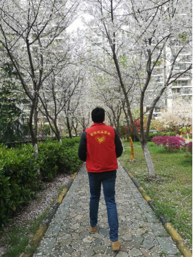 他接到的第一份志愿者工作就是社区安全巡逻员,任务就在社区内巡逻,确保居民们不在社区内闲逛,保证社区居民在交流时保持安全距离。当他见到有居民在社区内闲逛,他会主动上前询问情况,让居民们在规定的时间内回家;当他看见有居民不戴口罩出门时,他会主动将自己多带的口罩发给居民,并嘱咐他们重视自我防护;当看到有居民站在一起聊天时,他就主动上前跟大家普及防疫知识,让大家保持一定的安全距离。为了大家的安全,他就这样一刻不停的在社区里巡逻,3个小时的时间他走遍了小区的每一个角落,回家后他的双腿已经疼得不能动弹,但是当他想到能够为大家创造安全的生活环境心里的幸福感油然而生。