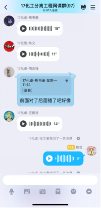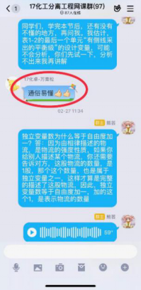 第一次在线课程快结束时,有学生反馈,虽然互动的形式很有意思,但效率不高,因为优学院app的聊天功能受限,不能发语音;每门课程的班级都有一个群聊,且群聊名称都一样,并不知道分离工程的课程群聊是哪个。在接纳了同学们的意见后,决定网上教学不完全依赖优学院平台,发起投票,由学生决定互动环节在QQ群内进行还是在钉钉上进行,多数学生选择了QQ平台,于是建立了QQ网课群,采用优学院+QQ群双管齐下的模式,开展网络教学。